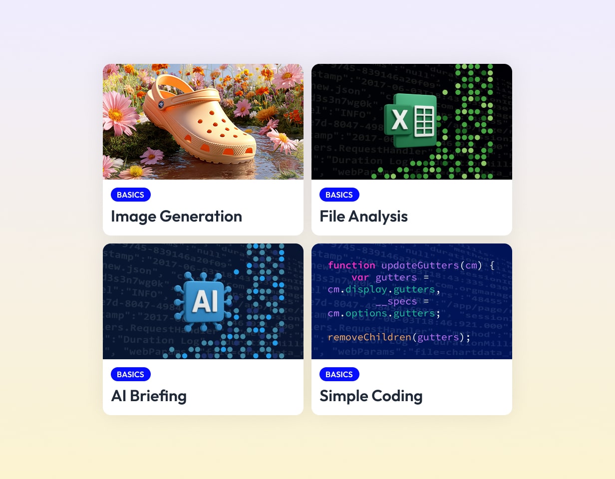 Choose the area you care about most and start learning with simple, guided lessons. Each path focuses on real-world results so you can feel confident using AI in work and everyday life.