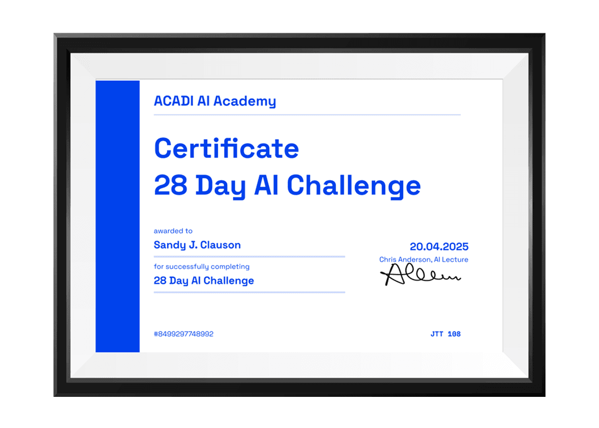 When I started, I barely knew what AI was. Now I use it to organize my day and help my small business. Acadi didn’t just teach me. It showed me what’s possible.