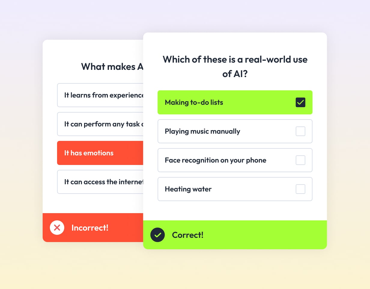 Test what you’ve learned with quick knowledge checks designed to help you remember and apply your skills in real life